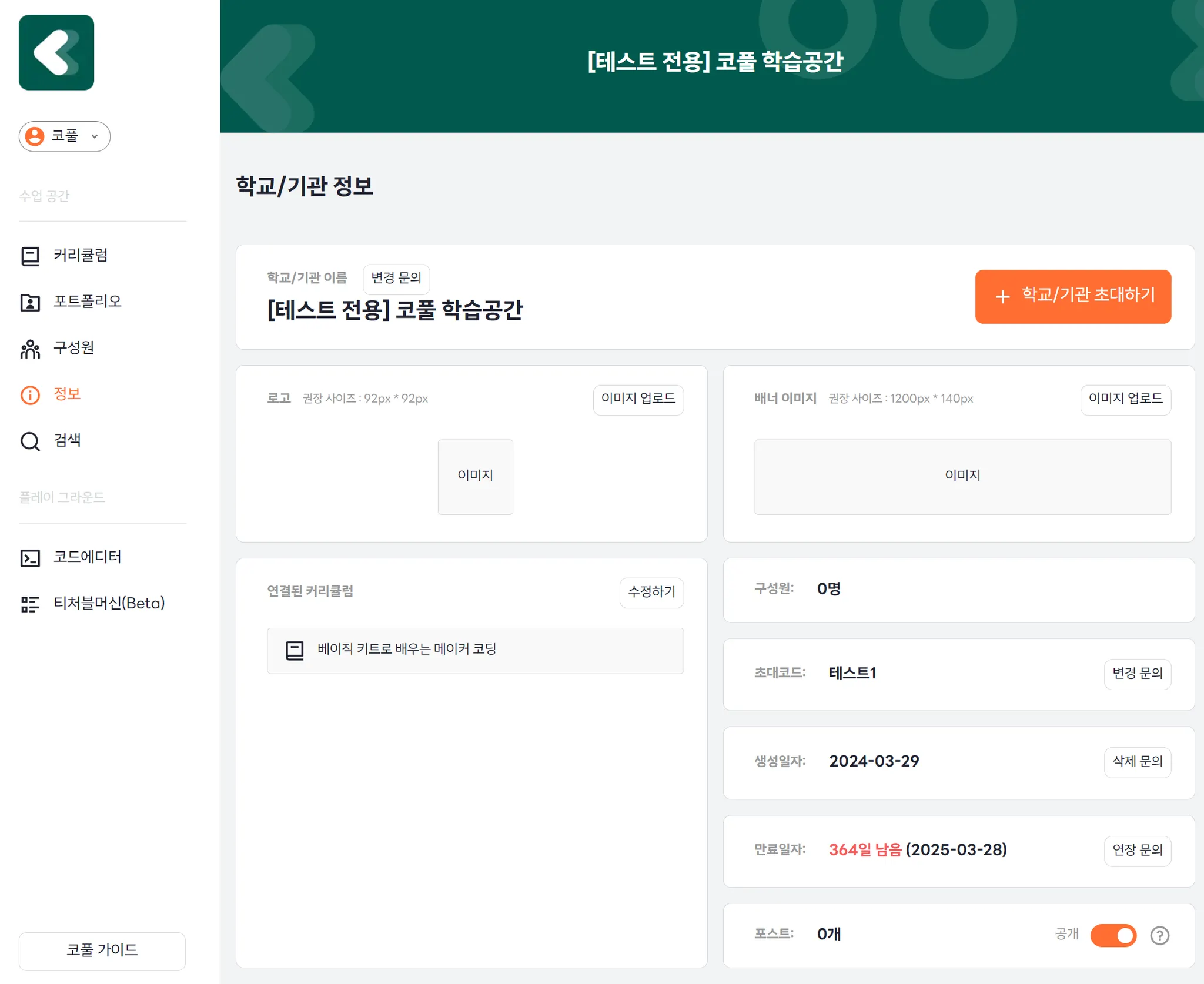 ① 연결된 커리큘럼이 있는 경우, 왼쪽의 정보 탭을 선택해주세요.